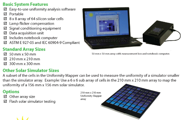 目前太阳光模拟器由光谱匹配度、辐照均匀度、时间或辐照稳定性来划定A、B、C等。AAA 太阳光模拟器的性能在3类标准中都被评定为A级,标准分别为IEC 60904-9 Edition 2 (2007) edition、JIS C 8912和ASTM E 927-05。AAA级系列产品提供了一种性价比较高的选择。光伏产品标准规定AAA级太阳光模拟器的三个关键指标必须严格满足要求,它们分别是:光谱匹配度、辐照均匀度和时间稳定性。¥ 0.00立即购买